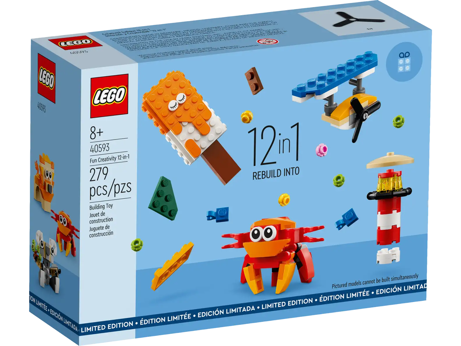 Appeal to a travel fan aged 8 and up with this LEGO® Fun Creativity 12-in-1 (40593) buildable kit. The accessory set inspires building and rebuilding and features 12 models, including a plane, sailboat, small cabin, crab, koala, lion, coral reef, lighthouse, sand castle, ice cream, carousel and a campfire. The crab and ice-cream models can be built at the same time. The set helps encourage creativity at home or while traveling and makes a fun vacation souvenir for play or display.