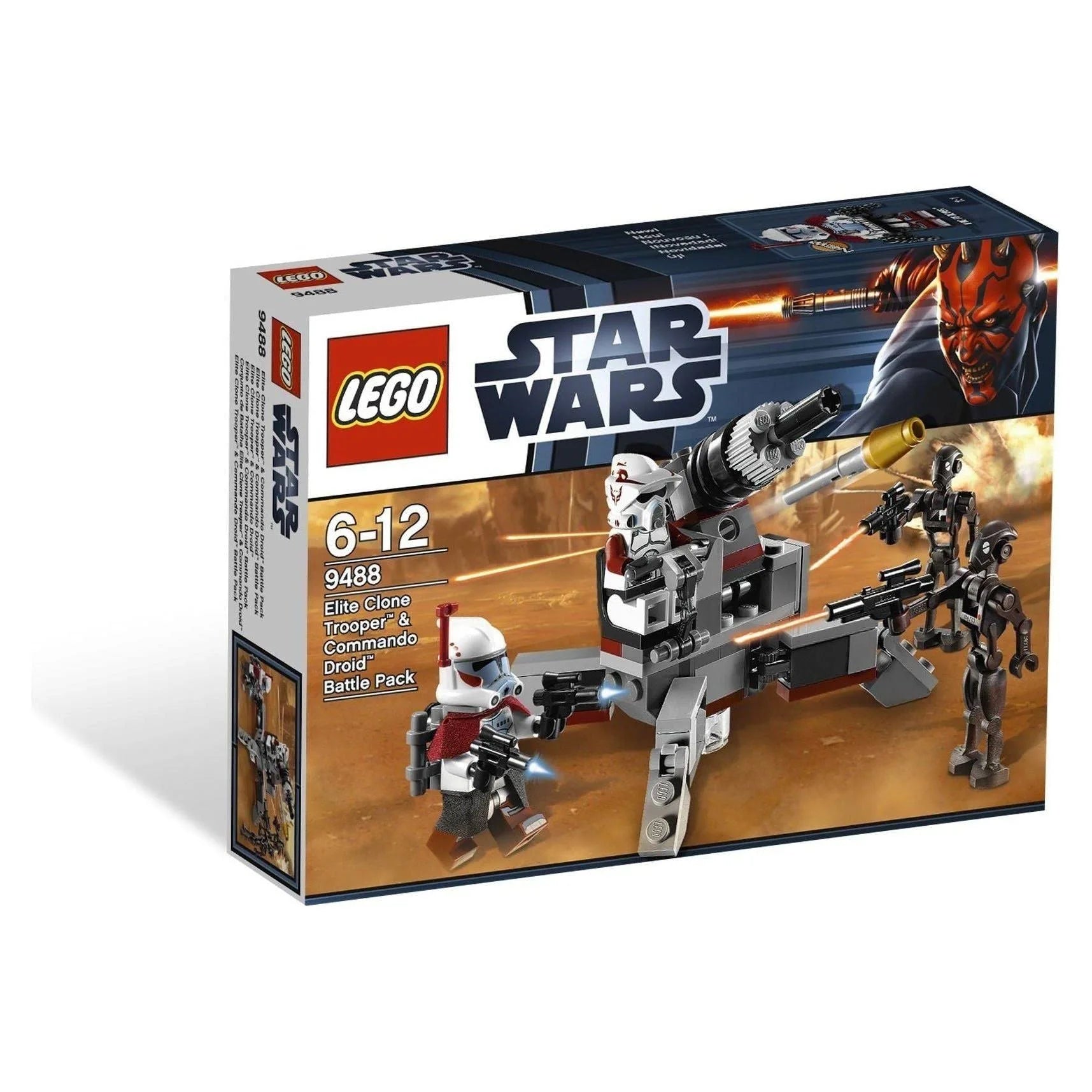 LEGO 9488 Elite Clone Trooper & Commando Droid Battle Pack was a 98 piece Star Wars set with 4 minifigs released in 2012. It includes a Republic AV-7 Anti-Vehicle Cannon, an ARC Trooper, one ARF Trooper and two Commando Droids.